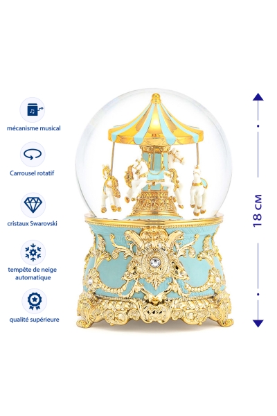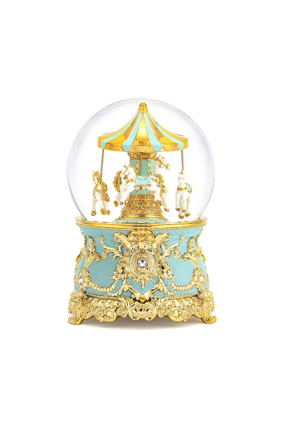 Une boule à neige dans le style Tiffany Blue — un carrousel tournant orné de cristaux Swarovski.