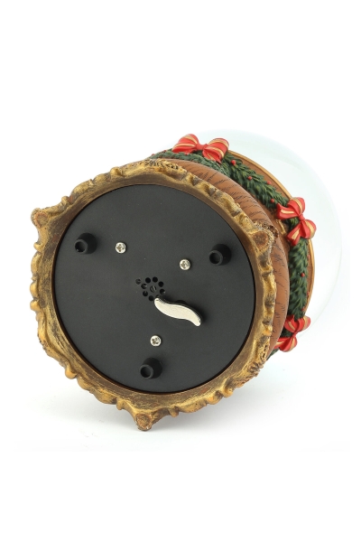 Lorsqu’on remonte le mécanisme musical, comme une boîte à musique, la mélodie « Vive le vent » retentit. En même temps, la scène à l’intérieur commence à tourner, et la neige se met à tourbillonner automatiquement, créant l’effet d’une véritable tempête hivernale. Et tout autour renaît cette attente du miracle, ce sentiment que la magie de Noël est sur le point de se réaliser.